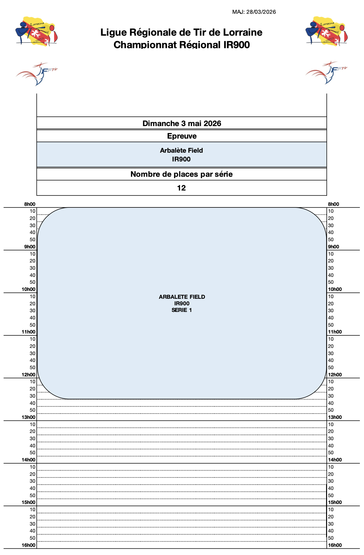 L'heure affichée sur le plan de tir est celle du 1er coup de match.